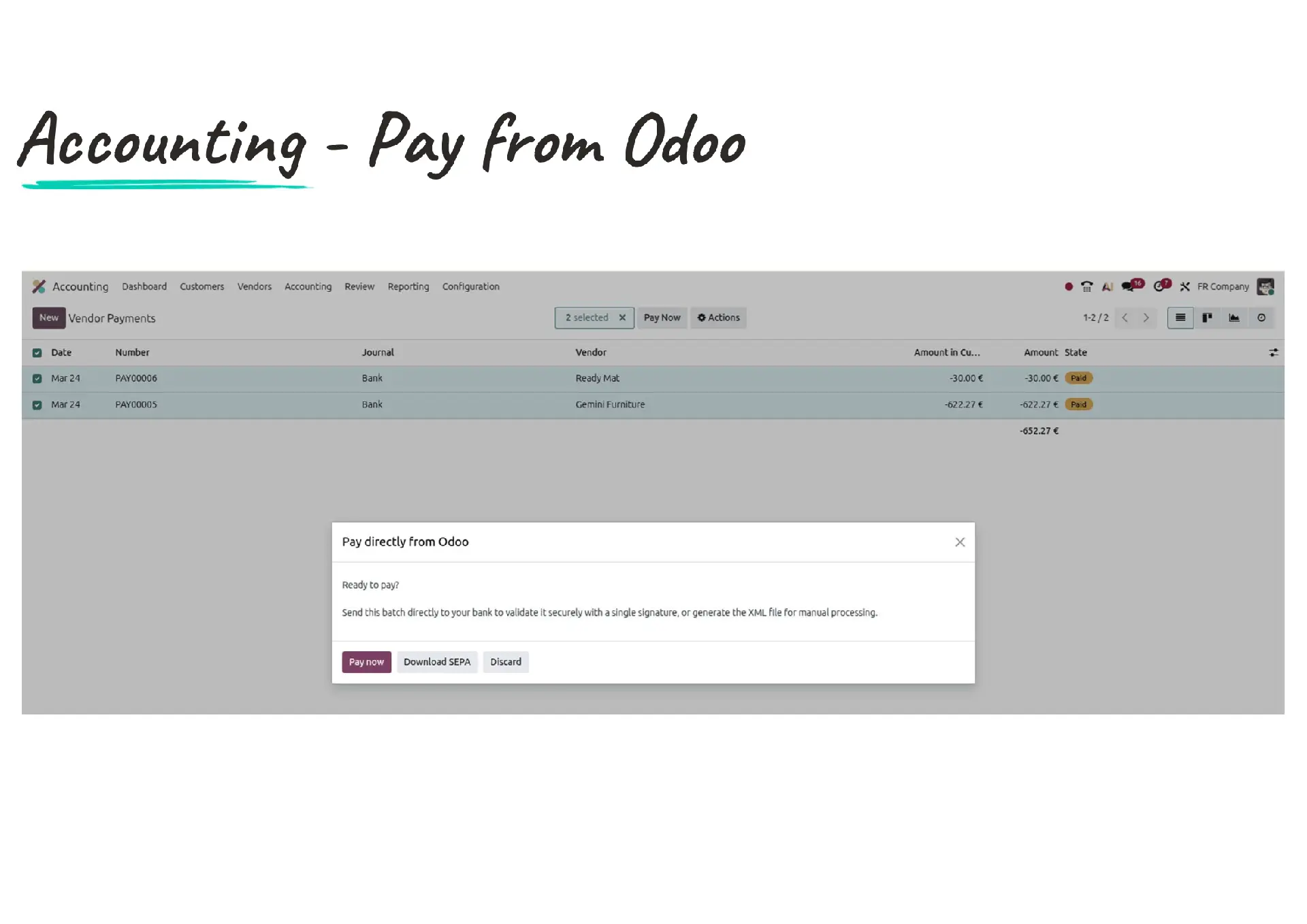 - Rechnungen „bezahlen direkt aus Odoo“