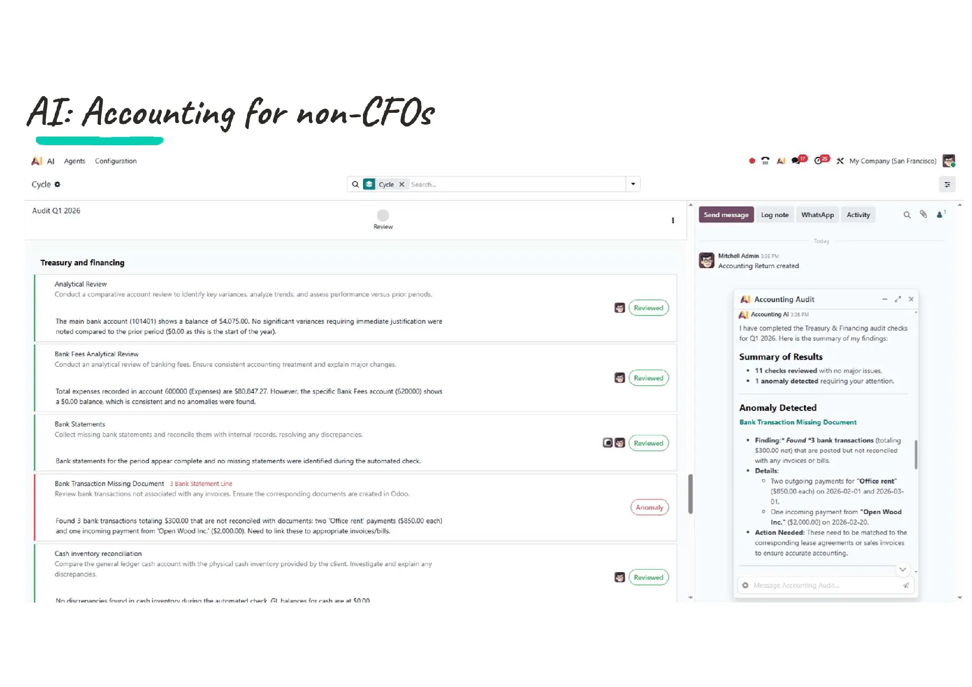 Odoo 20 soll Buchhaltung verständlicher und zugänglicher machen. KI hilft dabei, Daten zu erklären, Vorschläge zu machen und typische Fehler zu vermeiden – besonders für KMUs ohne eigenes Finance‑Team.