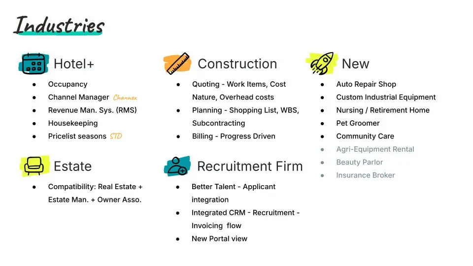 👉 Odoo positioniert sich weiter als Branchen‑ERP – nicht nur als Baukasten.