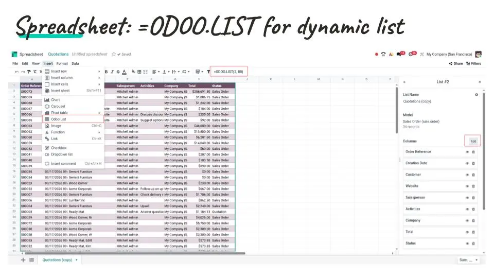 - dynamische Listen (=ODOO.LIST)