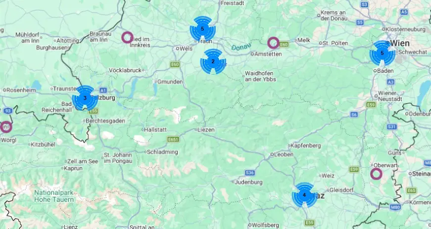 Odoo Partner Österreich Landkarte. Datenpol hat das HQ in Linz, sowie einen Standort in Wien und Graz.